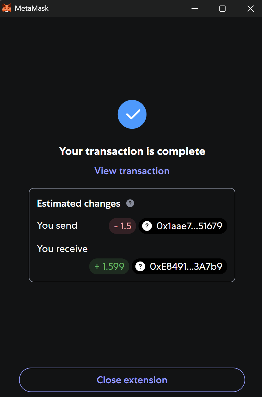 - Гүйлгээ амжилттай болсон мэдэгдэл Метамаск дээр харагдна.