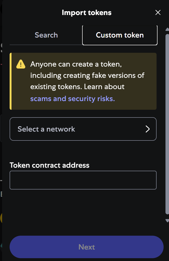 - Доор харагдах Custom token товчийг дарж Select a network дээр Binance Smart Chain сонгоно.