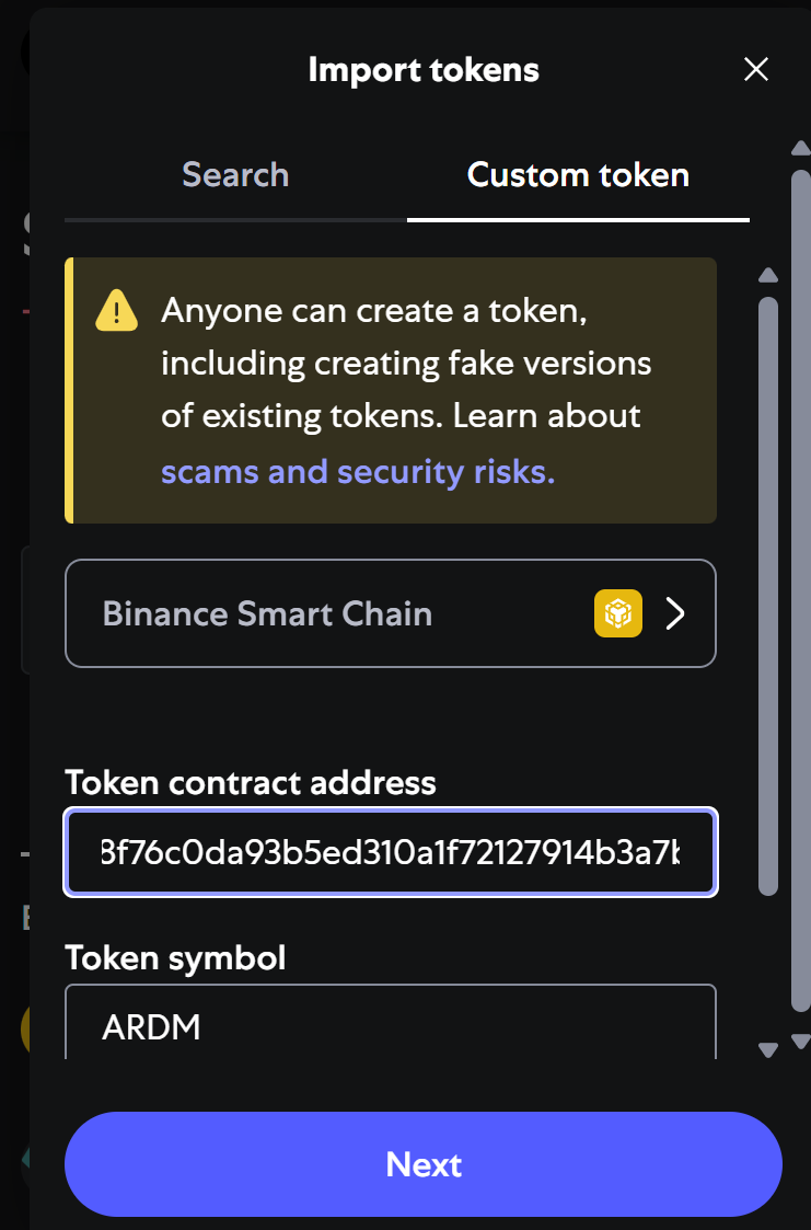 - Гарч ирсэн цонхноос ARDM токеныг сонгоно.