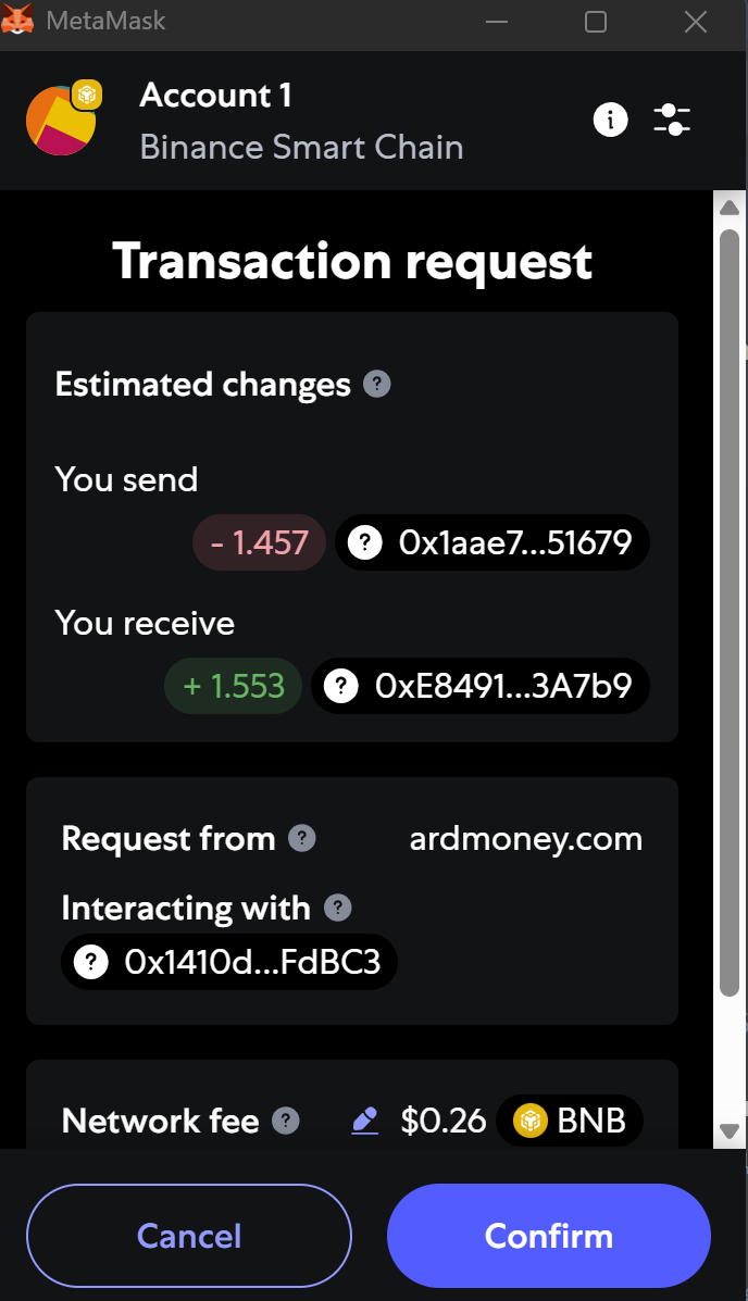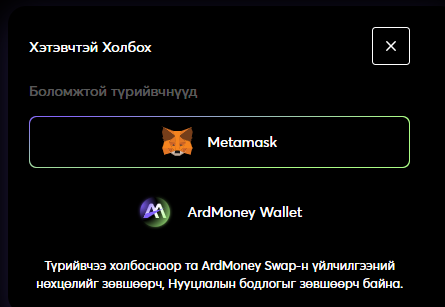 Дээрх зааврын дагуу хийх боломжтой ба метамаскын өөрийн хөтөчийг ашиглаж Ardmoney.com-ийг ашиглах нь хялбар байдаг.