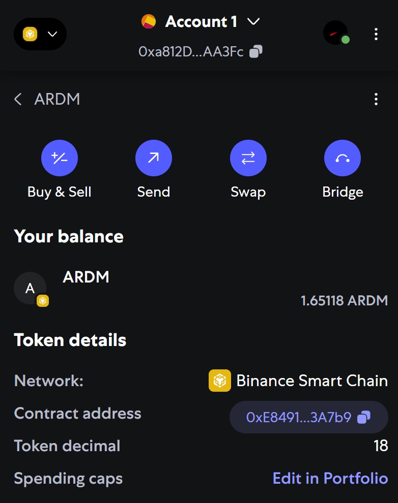 - Таны хэтэвчинд ARDM токен байршсан харагдана. (Хэрэв ARDM токен харагдахгүй бол энд дарж хэрхэн нэмэх заавартай танилцана уу.)